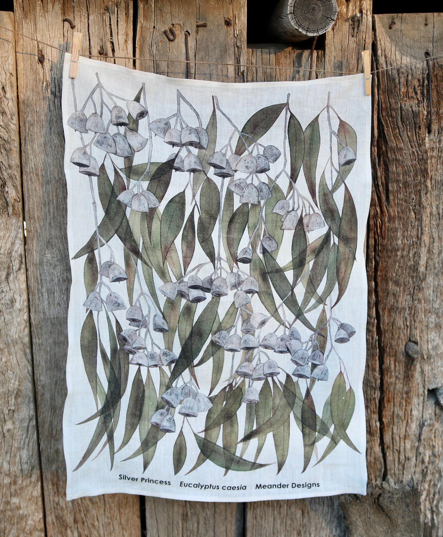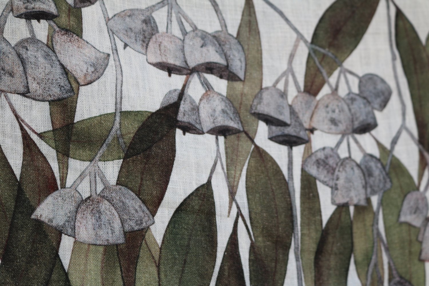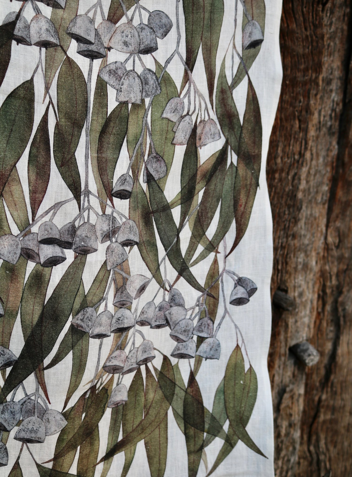 I painted this depiction of the caesia's sculptural weeping branches bearing silvery bell-shaped gum nuts in a mixture of watercolour and designers gouache.